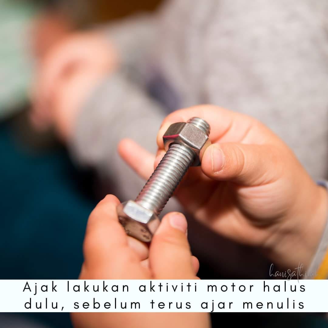 7. Ajar lakukan aktiviti motor halus dulu, sebelum terus ajar menulis