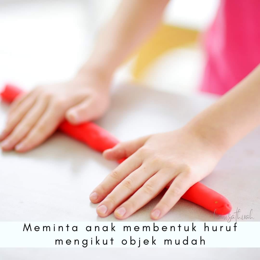 8. Meminta anak membentuk huruf mengikut objek mudah